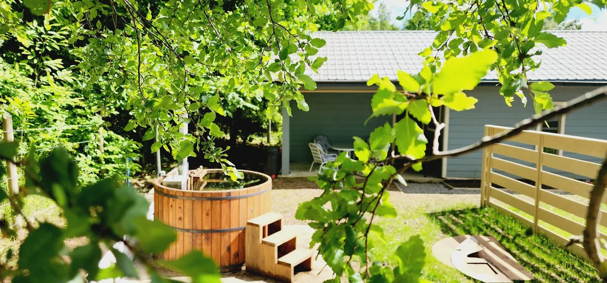 Disfrute de una relajante bañera de hidromasaje al aire libre con capacidad para 4 personas.